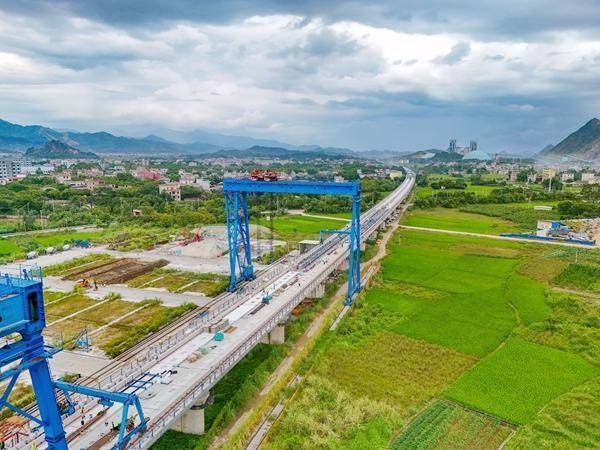 截至目前,南珠高铁玉林北至岑溪东段建设已进入全面冲刺阶段,路基工程完成99.7%、桥梁工程完成96.9%,隧道工程完成99.8%,站后“四电”和站房工程有序推进,无砟轨道工程已启动,全力攻坚2026年通车目标。