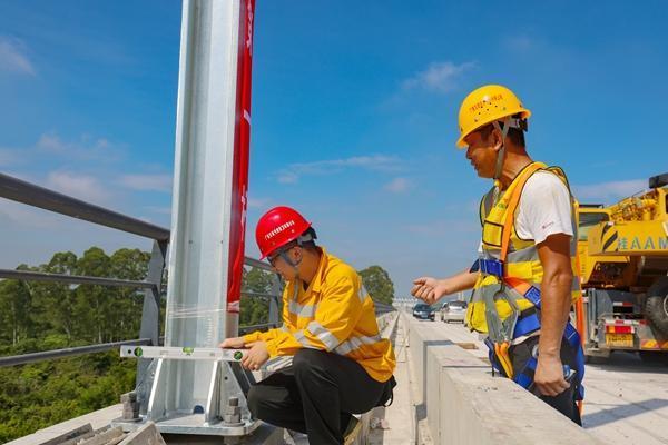 当天组立的第一杆支柱高9米、重约1吨。施工过程中,项目建设团队采用自主研发的高铁锂电精密拧紧系统、腕臂偏移测量仪等智能建设工机具,同时探索使用信息化施工生产管理平台,通过建立物资管理和预配中心,实现物资设备管理和生产调配的集约化、工厂化、信息化,顺利完成接触网第一杆支柱组立。